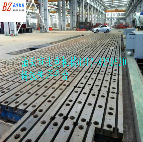 鑄鐵鉚焊平臺(tái)選購(gòu)(15720241120)北重鉚焊平臺(tái)(鉚焊平板)用于鉚焊工藝的鑄鐵平板,工作面上有孔和T型槽,孔主要用來(lái)清理鉚焊時(shí)的一些鐵渣和焊接廢棄物,鉚焊平臺(tái)的T型槽主要是用來(lái)固定焊接件.